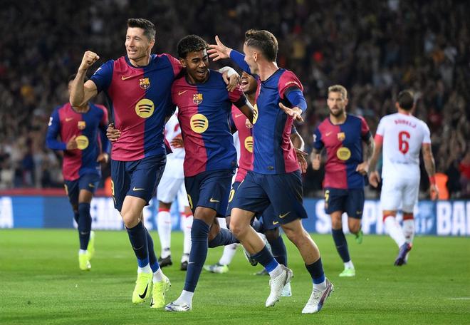 巴萨近期状态火热,各项赛事豪取三连胜,进攻端火力全开,近两场打入9球场均45球上轮联赛41大胜塞维利亚,莱万拉。